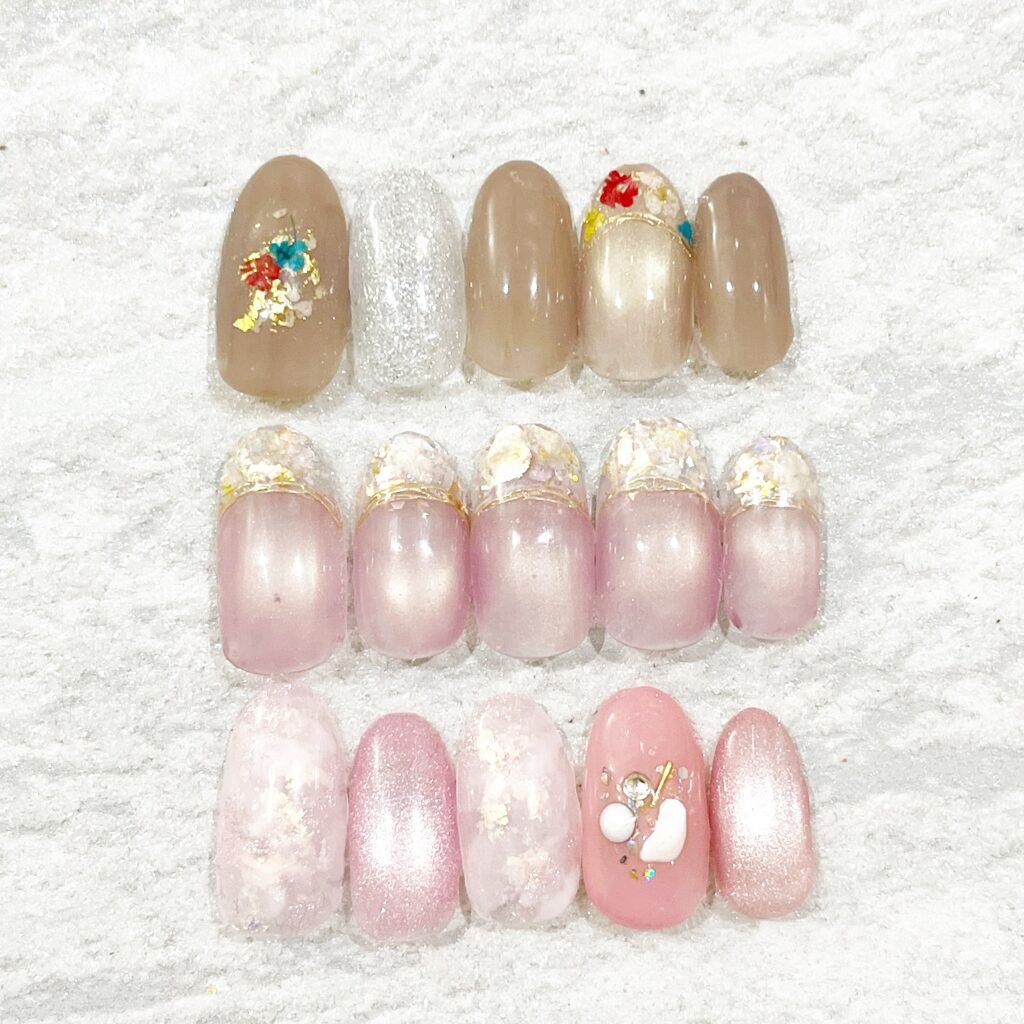 ネイルデザインのベースカラー、ストーン等は